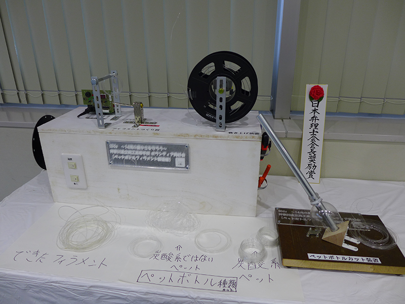 ペットボトルの再利用を目的として考案しました。ペットボトルを3Dプリンタのフィラメントにすることで、自分の思った形に成型出来ます。ペットボトルをフィラメントにするための装置に、道具・工具が一式セットになっています。